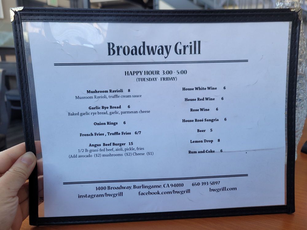 Welcome to Broadway Grill, where New American cuisine meets a warm, inviting atmosphere. This classy establishment located at 1400 Broadway, Burlingame, provides a delightful dining experience. Their menu boasts a variety of options, catering to all dietary needs, including keto and vegan selections. Signature offerings like the Broadway Burger and flavorful truffle fries are crowd-pleasers, as noted by satisfied visitors.